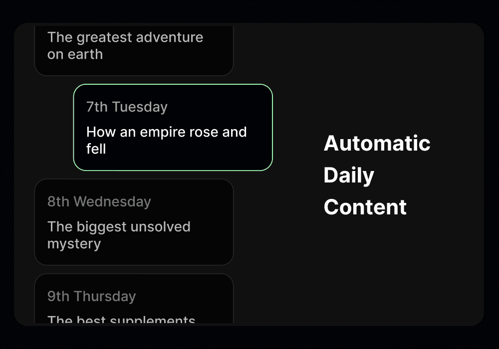 Choose a topic for your schedule. Select from a preset list or add a custom prompt. We'll start generating videos and posting them automatically.